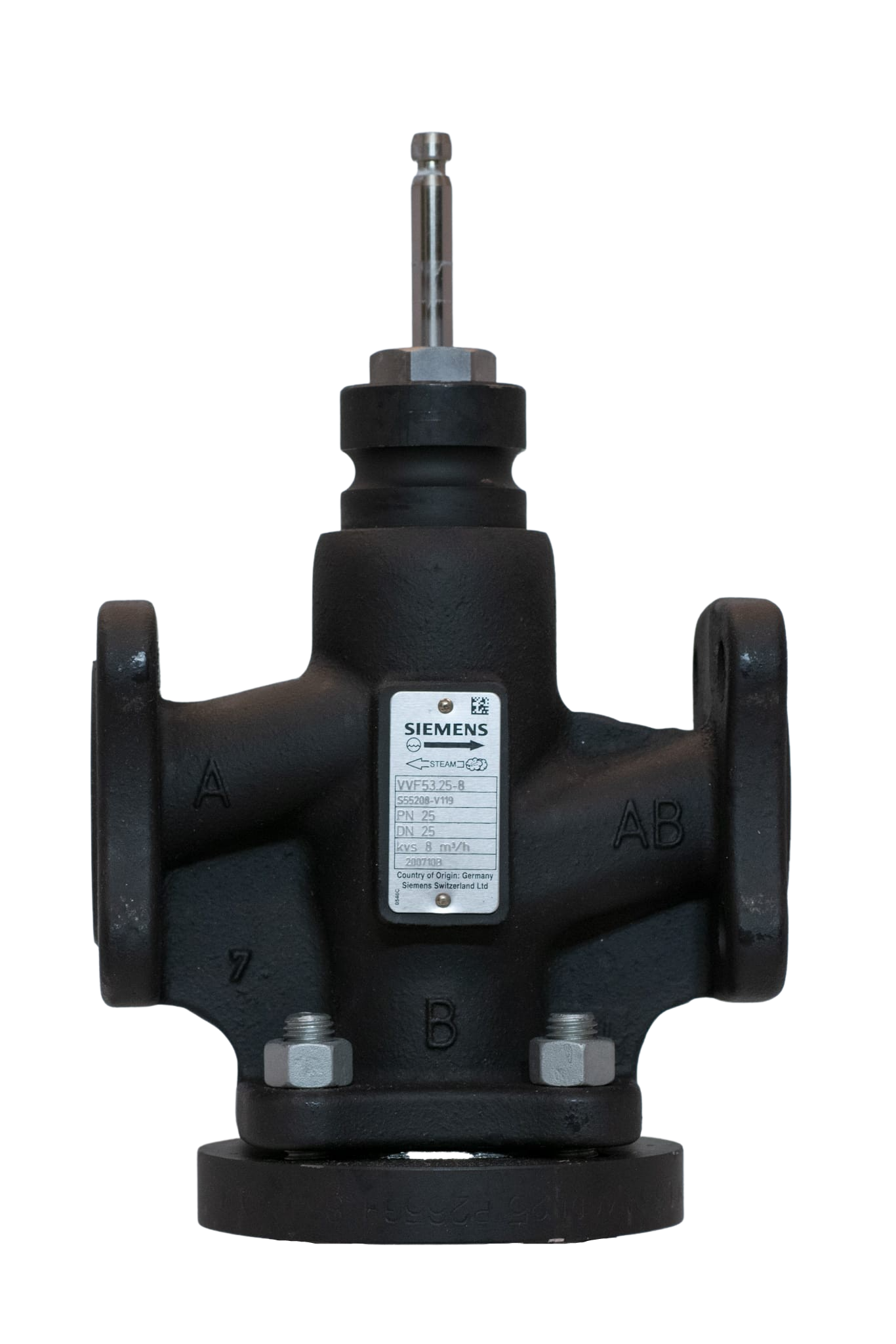Siemens VVF53.25-8 Kaksitieventtiili, 20 mm, DN25, Kvs=8, PN25, laippa
